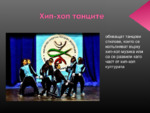 Хип-хоп танците обхващат танцови стилове, които се изпълняват върху хип-хоп музика или са се развили като част от хип-хоп културата...
